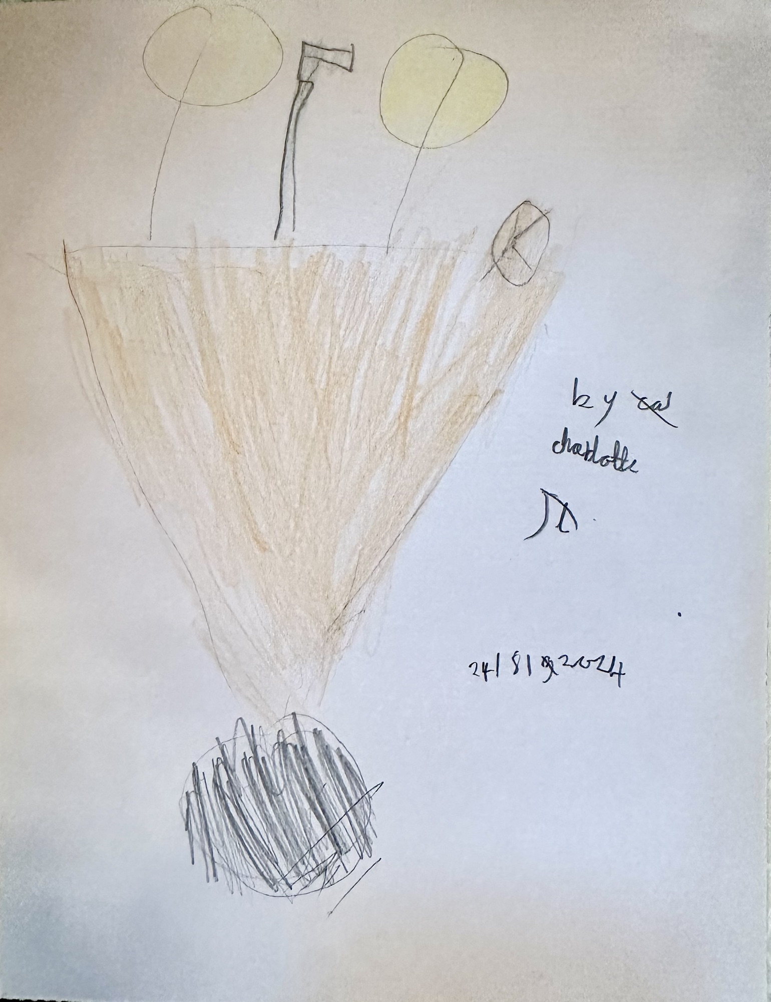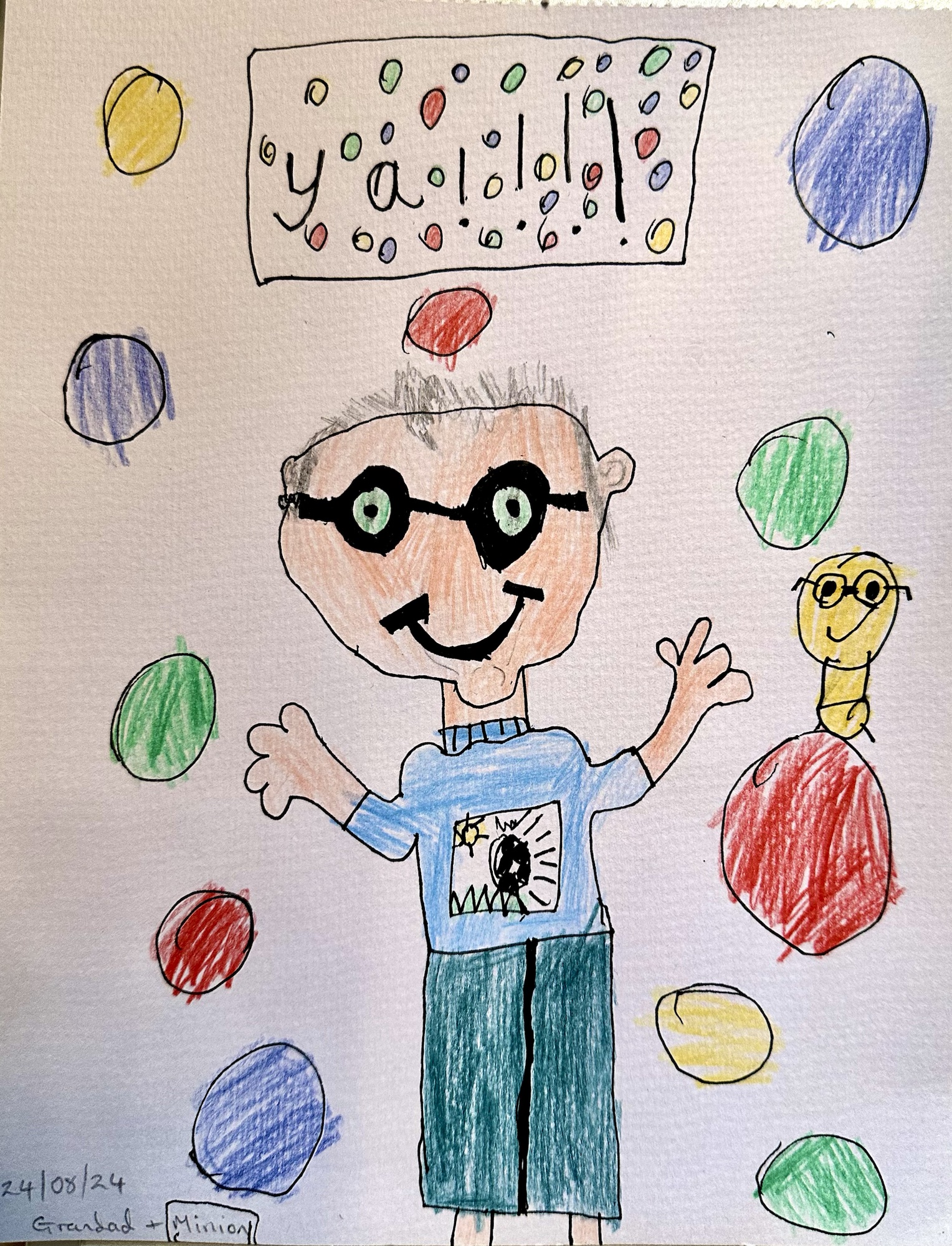 We couldn’t use any paint or water inside the cathedral so everyone sketched using dry mediums of pencils, coloured pencils, charcoal and pens. Most members drew the architecture and views around them but as usual we don’t mind at all if you come along to a session and ‘do your own thing’, so a giraffe and highland cow join the gallery. We start off with the girls’ pictures, including a super picture of Grandad Ron…