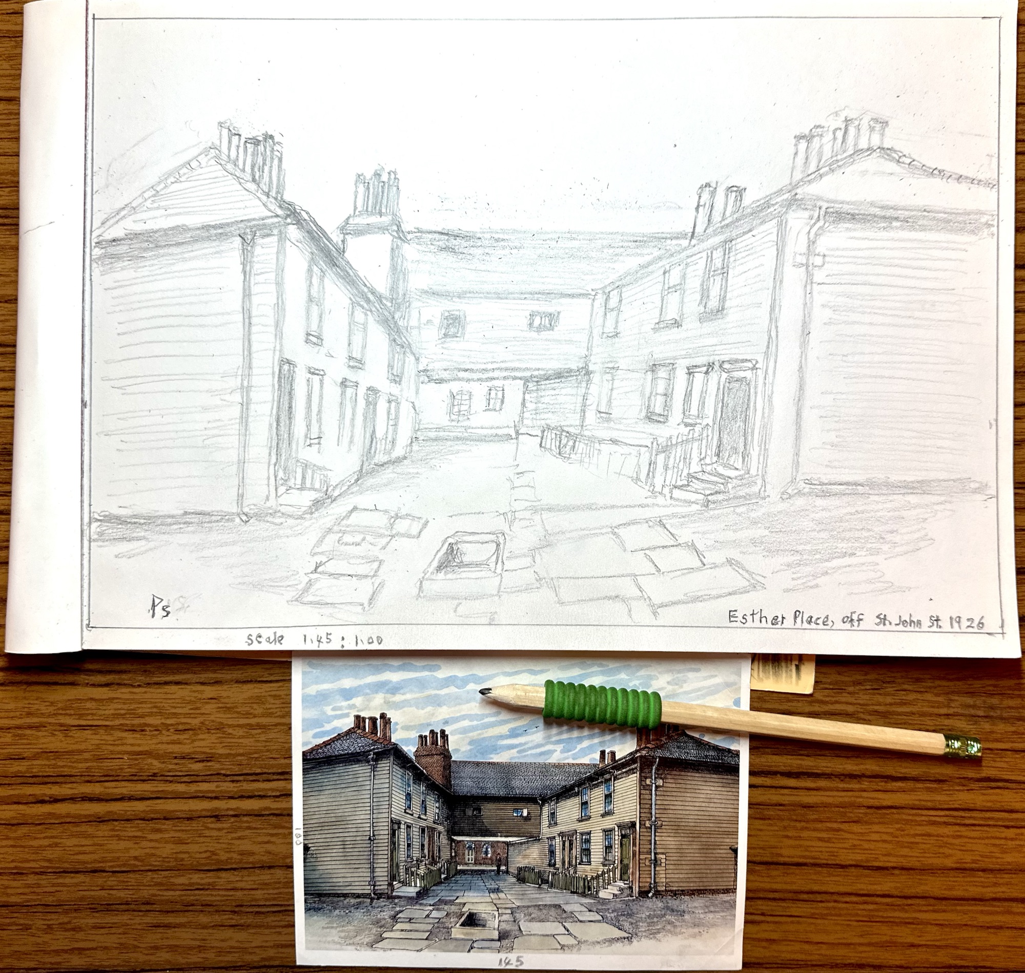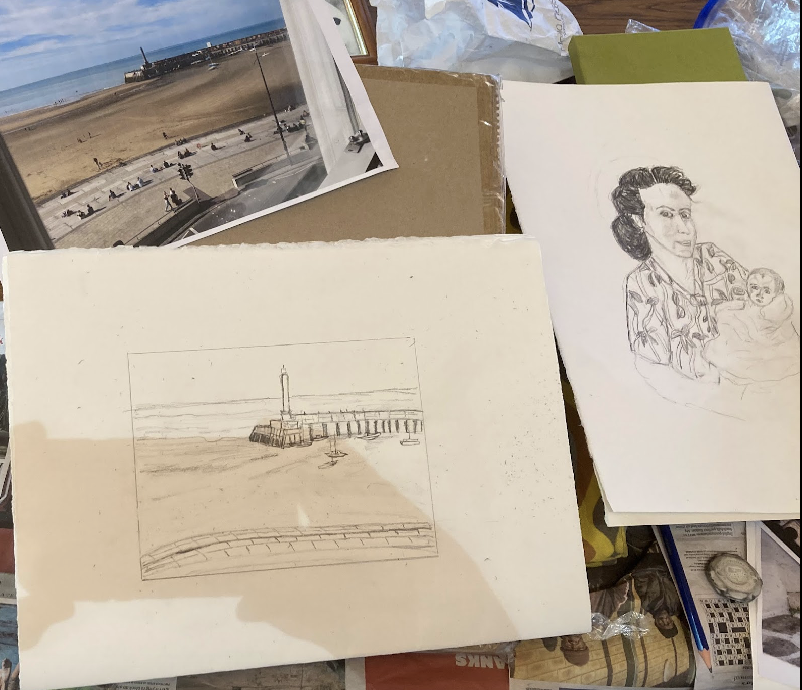 A good start was made with the pictures and hopefully they’ll be finished at home. Patrick finished his pencil drawing inspired by an old postcard.