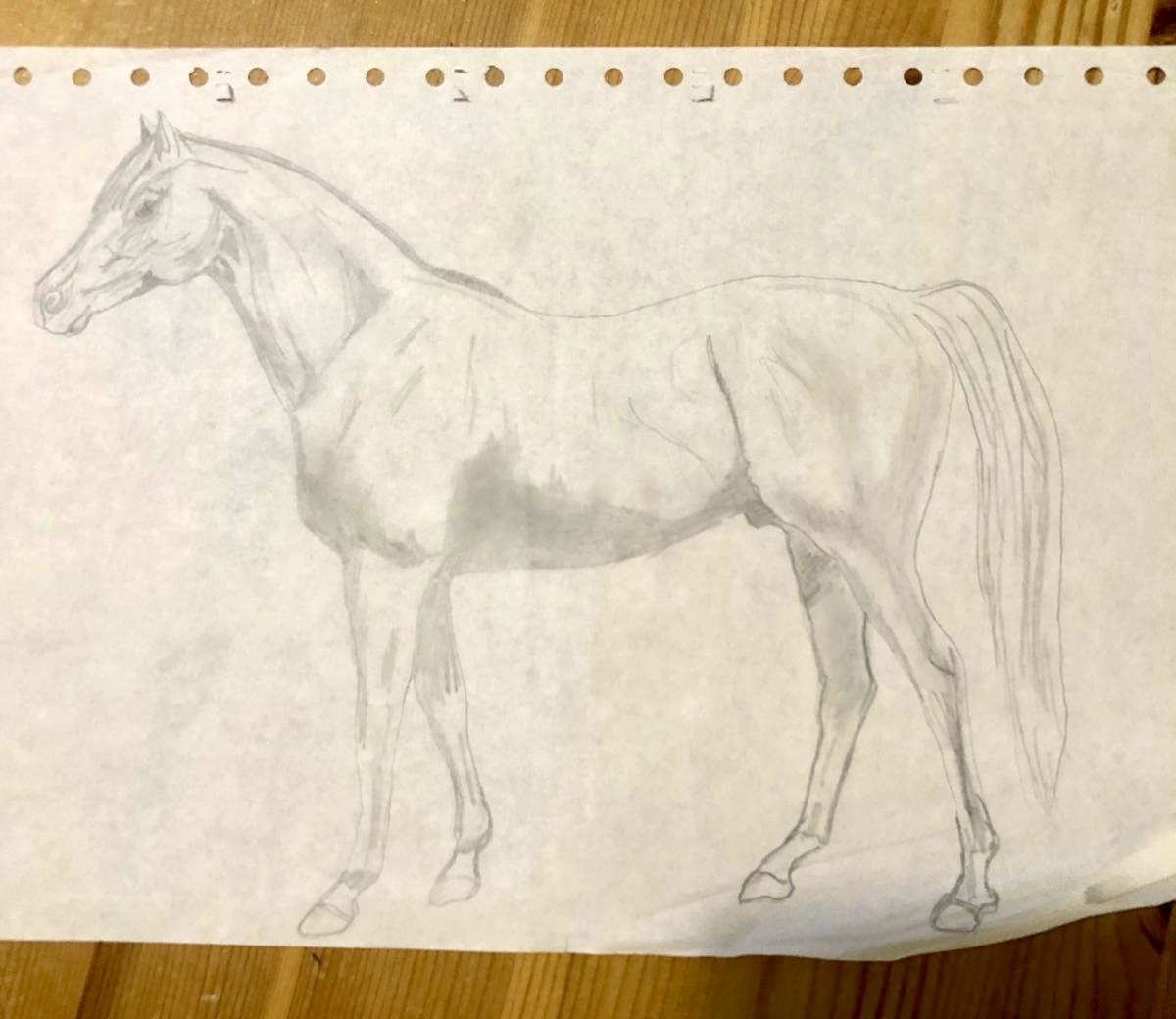 It was lovely to see ten members at the session, all eager to try their hand at drawing and painting horses, which we all thought was quite a challenge. The session was inspired by the birth of George Stubbs 300 years ago this month and his extraordinary paintings of horses in Georgian Britain. His most famous painting is ‘Whistlejacket’ in The National Gallery in London where visitors admire the horse’s perfectly formed body against a plain background so nothing distracts from the horse himself.