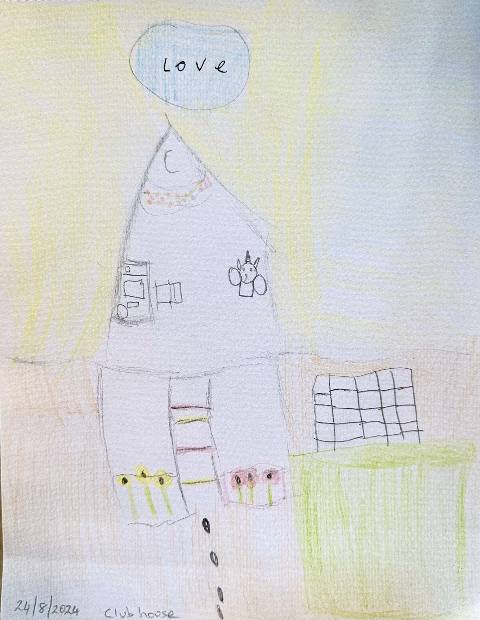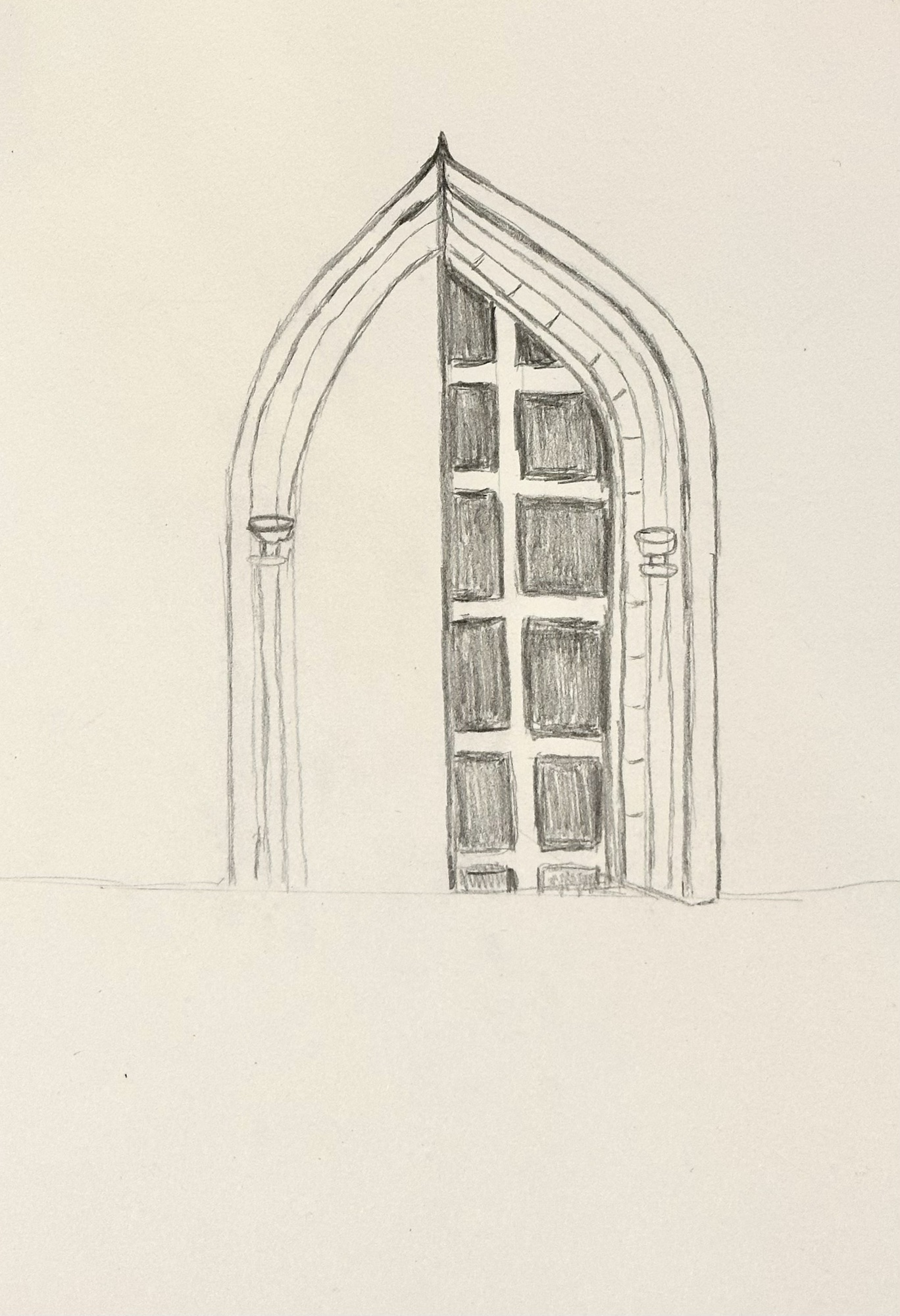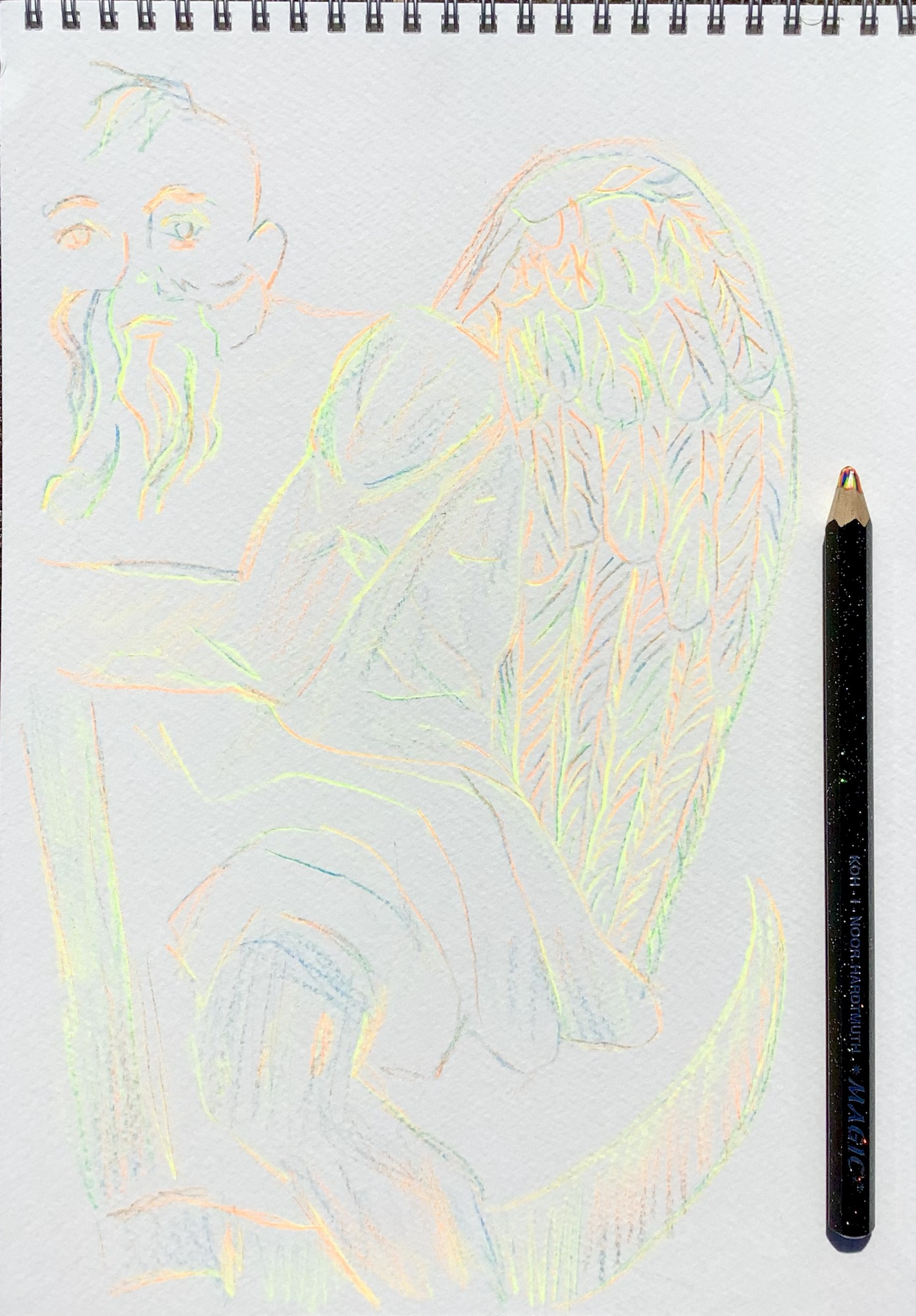 We couldn’t use any paint or water inside the cathedral so everyone sketched using dry mediums of pencils, coloured pencils, charcoal and pens. Most members drew the architecture and views around them but as usual we don’t mind at all if you come along to a session and ‘do your own thing’, so a giraffe and highland cow join the gallery. We start off with the girls’ pictures, including a super picture of Grandad Ron…